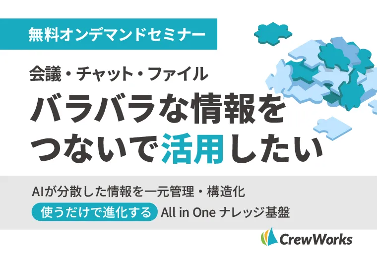 最新の生成AI技術を活用した「AIアシスタント」「AIエージェント」「AI議事録」によって、CrewWorksに蓄積された膨大なコミュニケーションの記録を「組織のナレッジ」としてだれでも簡単に活用できるようになります。