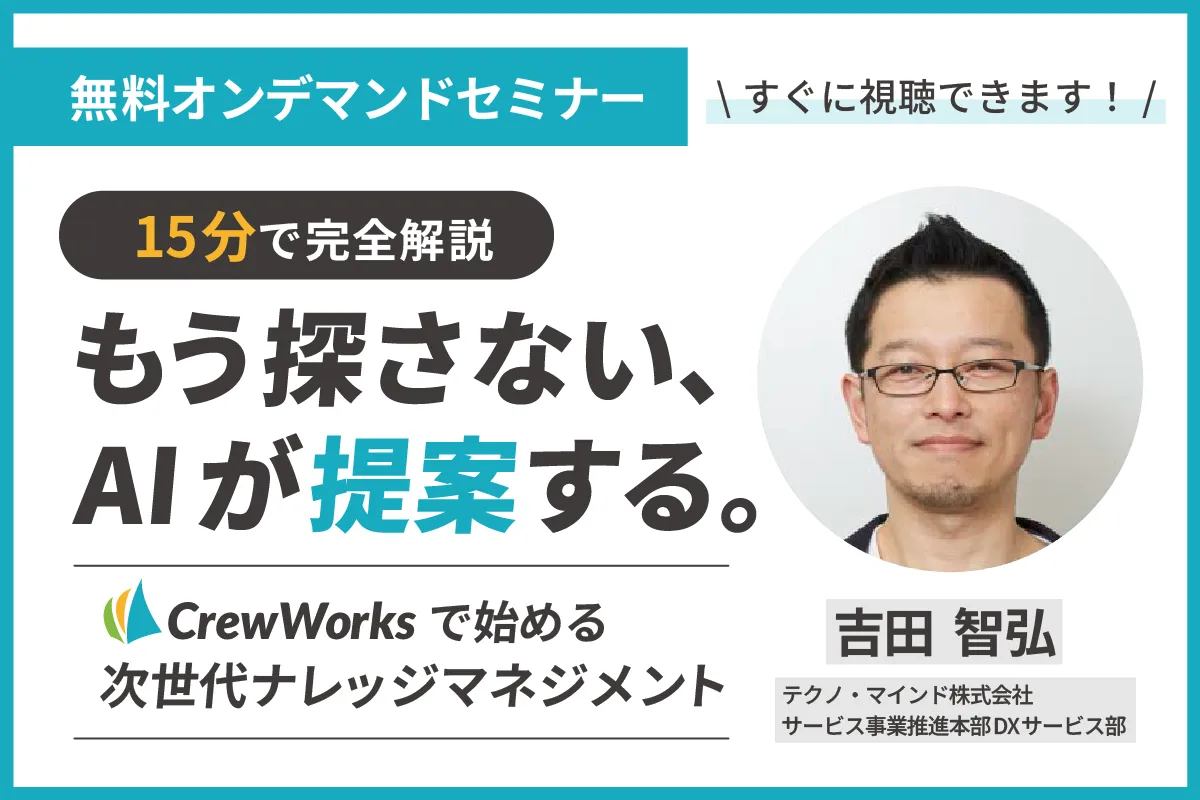 CrewWorksに蓄積された情報をAIが活用することで、探す・まとめるといった作業を減らし、より付加価値の高い業務に集中できます。